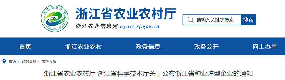喜報!青蓮食品認定為浙江省種業陣型企業!